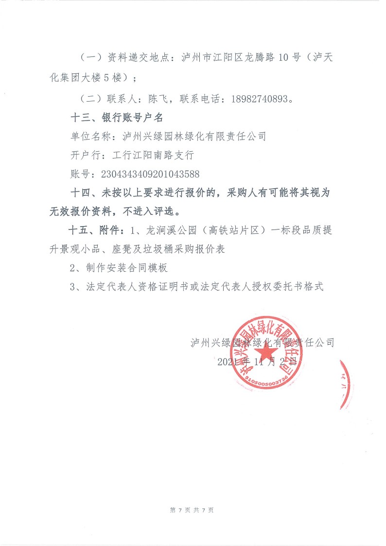 瀘州興綠園林綠化有限責(zé)任公司關(guān)于龍澗溪公園(高鐵站片區(qū)段)工程項目一標(biāo)段項目景觀小品等制作安裝班組采購詢價公告