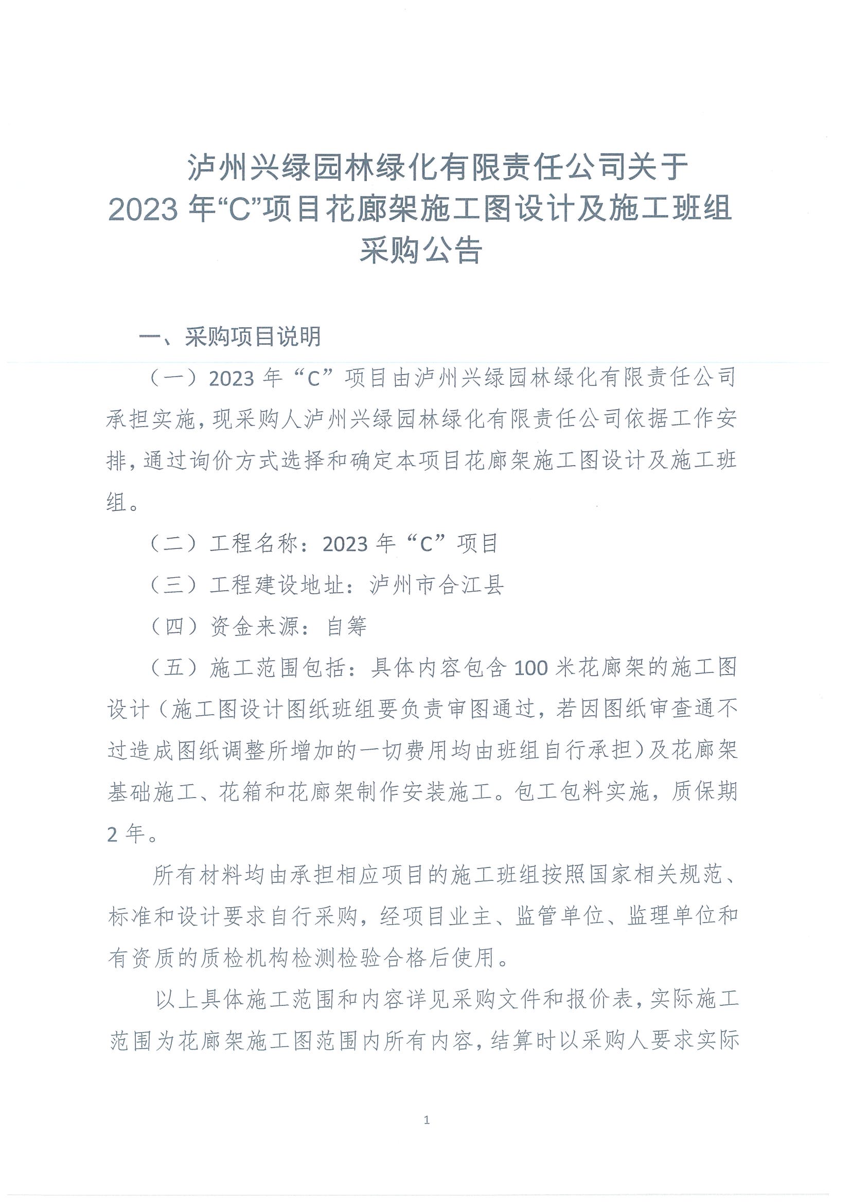 2023年“C”項目花廊架施工圖設(shè)計及施工班組采購公告