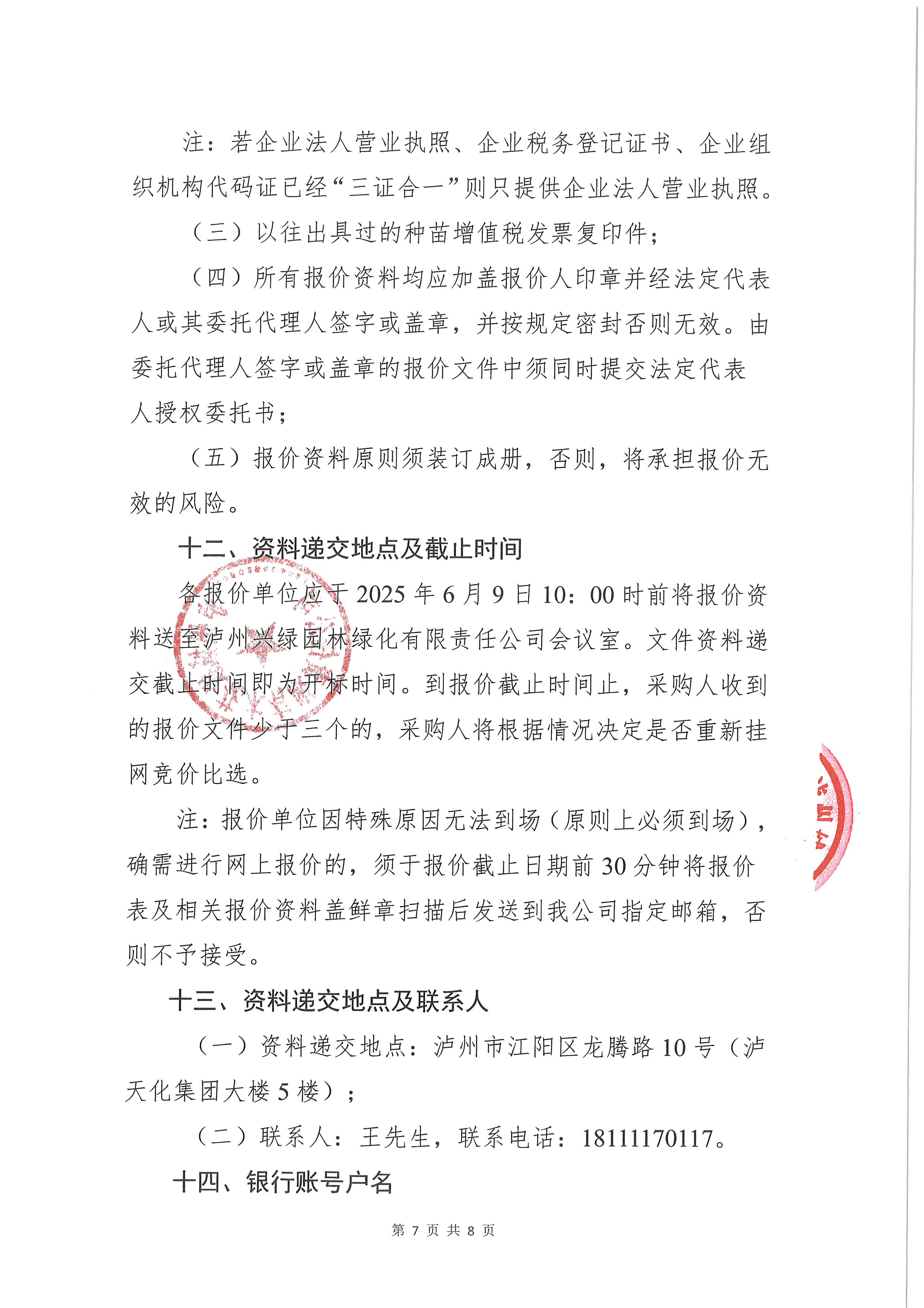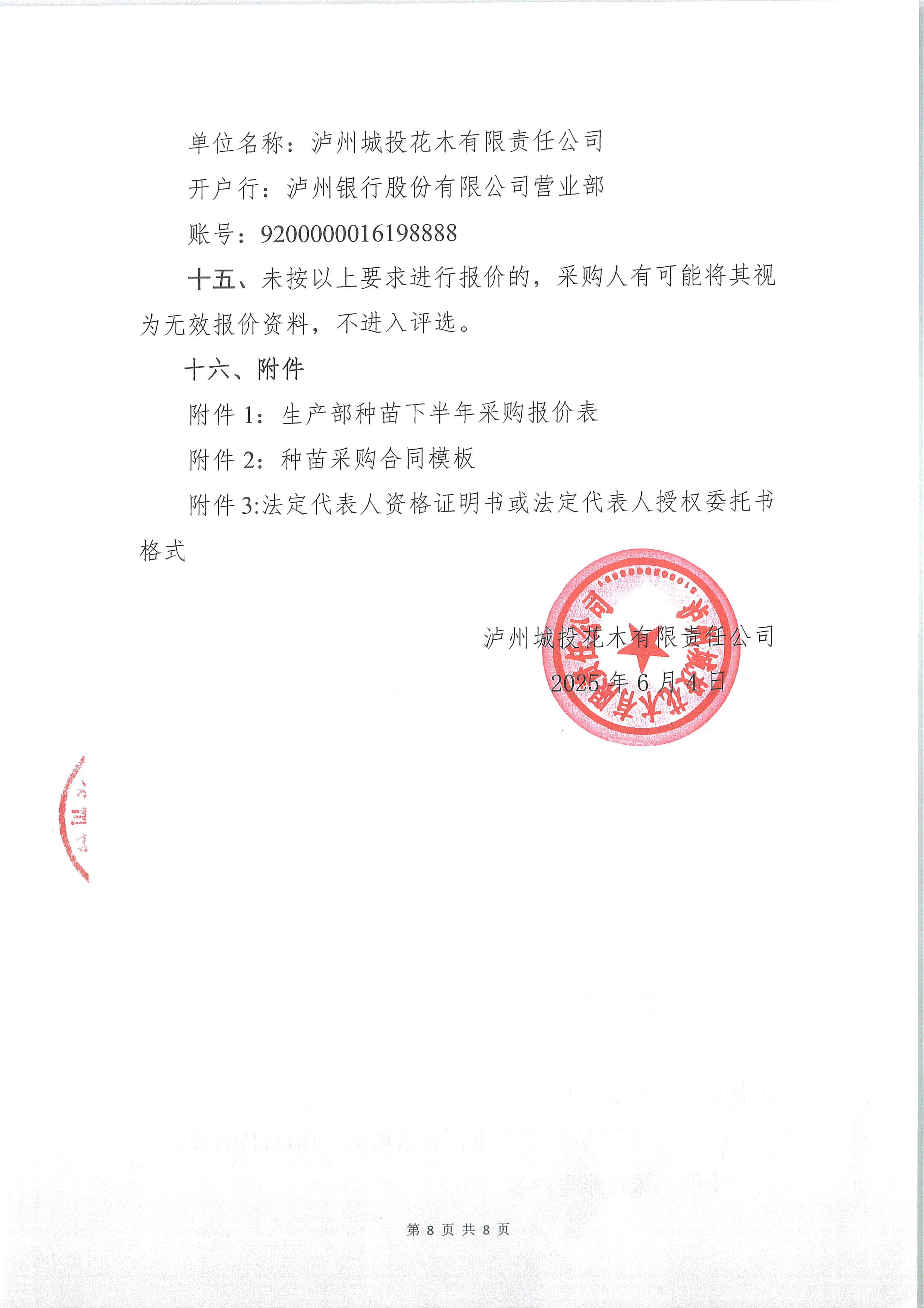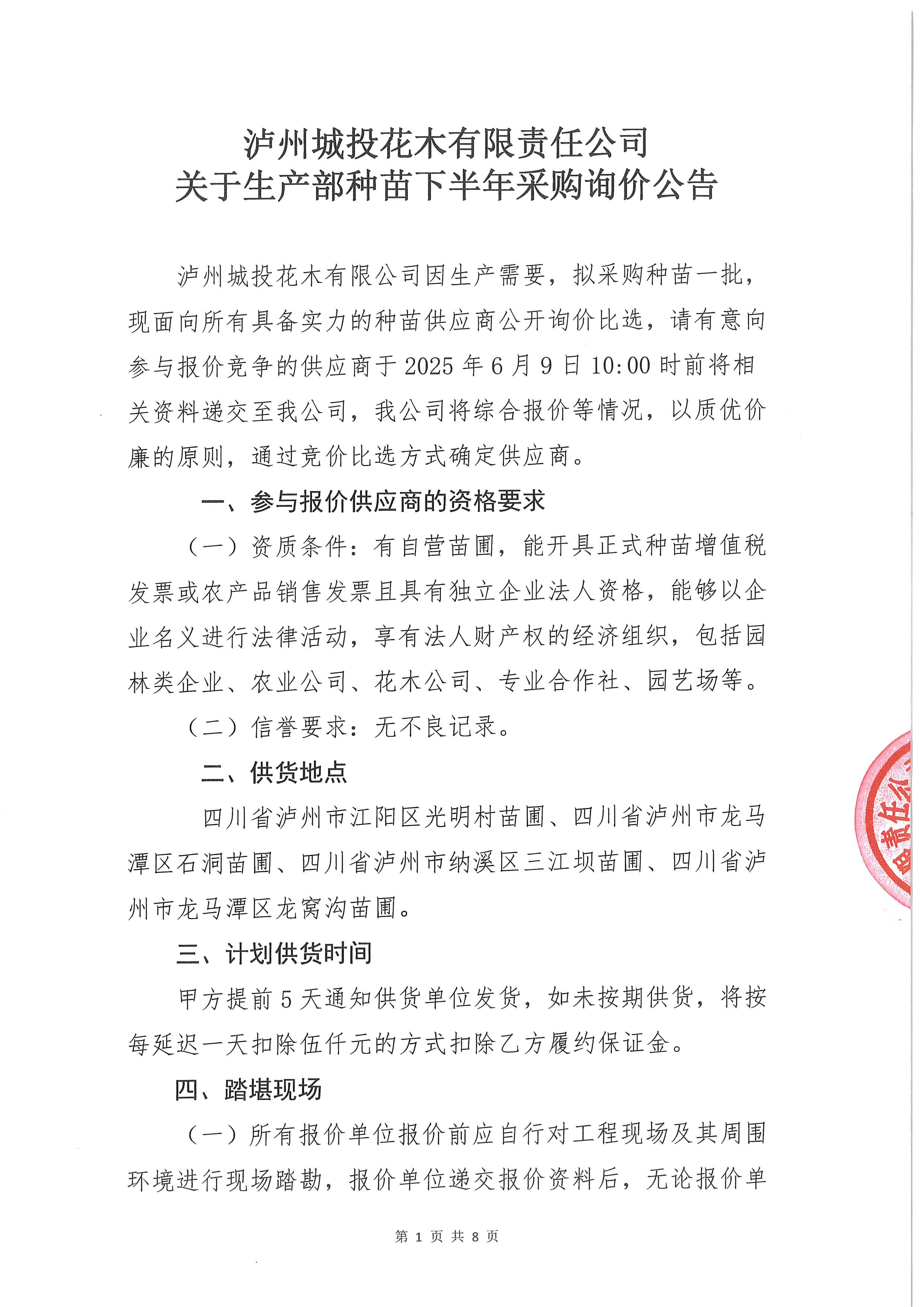 瀘州城投花木有限責(zé)任公司關(guān)于生產(chǎn)部種苗下半年采購(gòu)詢價(jià)公告